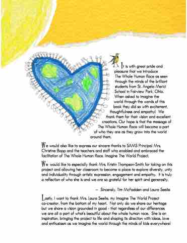 We would also like to express our sincere thanks to SAMS Principal Mrs. Christine Bopp and the teachers and staff who enabled and embraced the facilitation of The Whole Human Race, Imagine The World Project.